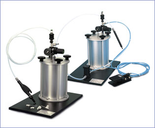 Har man inte samma krav på exakt mängd så finns ett manuellt system som aktiveras med handventil eller fotpedal. Detta system heter DE3 – DE3M Pneumatisk Doserings utrustning och kräver ingen elanslutning utan drivs endast av tryckluft. Detta gör således systemet lämpligt då explosions-brandsäkerhetskrav ställs på utrustningen.