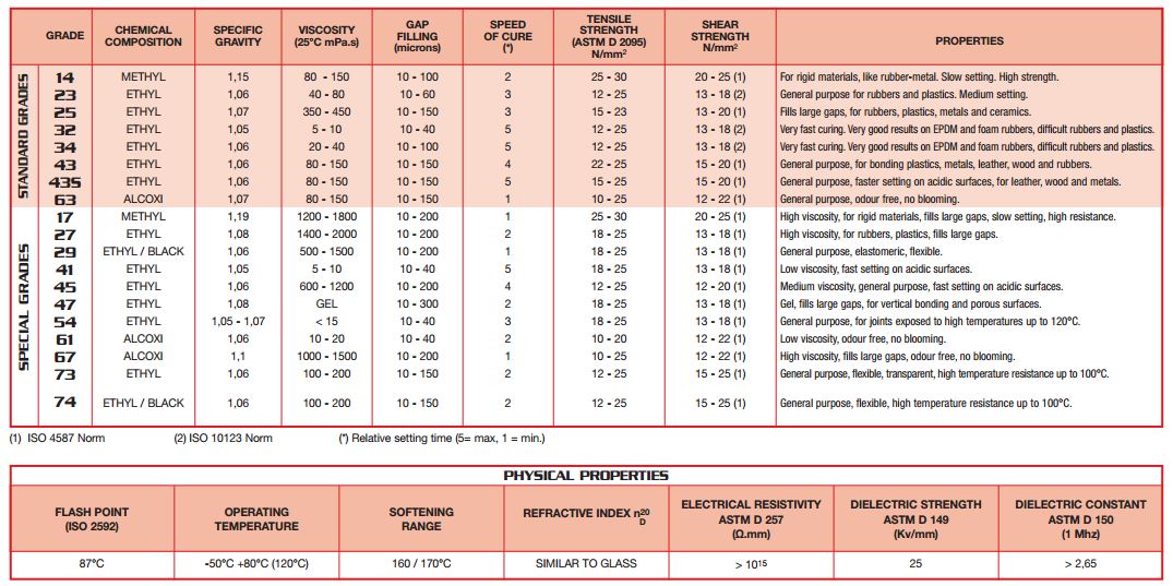 Standard snabblim, även kallade islim, Cyanoakrylat-lim är speciellt utformade för att limma material som metall, gummi och plast.